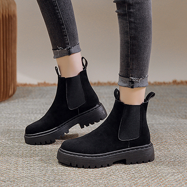 You are going to love getting out and having fun this fall and winter when you have boots like these in your wardrobe. The suede leather used to make the boots is soft and comfortable against the cold of the winter months. The sides of the boots include elastic inserts that are perfect for you to simply slip your feet inside when you are getting ready. The loop straps on the front and back of the top of the boots will assist you when you are pulling them on. Rounded toe box is comfortable even when you have been on your feet for extended periods of time. The deep tread of the rubber soles means that you will have more stability on different terrains. This also has a riser effect along with the low hele to make sure you are getting additional height to complete your look. This single color construction makes it easier for you to mix and match with these boots.