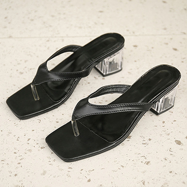 WMNS Thong Open Back Sandal with Square Toe and Clear Chunky Low Heel