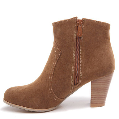 You are going to have the look of fall when you have a bootie like this that you can slip your foot into. The suede leather construction of the boots means that you are going to have a soft and warm appearance that is perfect for the changing weather. The full zipper on the inside of the boot makes it simple for you to slip your foot inside and be on your way. Seams in the bridge of the foot as well as a patch on the outside means that you are going to get the style you are looking for without all the additional colors. The rounded toe box makes sure that your feet will remain comfortable at all times. Flat soles include a nice arch and a chunky high heel made with stacked wood to offer you a stylish look that will complete your look.