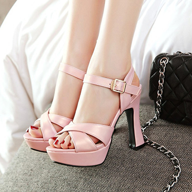 A vintage style is what has been given to these cross strap style heels. The toe area is a pointed toe build. The sole of the toe area is a platform construction. A set of two straps have been added on the top of the toe area. These wide strap have been crossed. These straps also create an open toe look to these heels. An ankle strap attached to a heel strap. A square brass buckle has been added to the outer area of the ankle strap. A bowed heel strap attached at the sides of the heel area. This strap is attached the the front ankle strap and creates the slingback look. The heels are a chunky, block stiletto style. The white colored material color of these heels makes them easy to match with many of the items in your closet. You can create several looks with these heels.