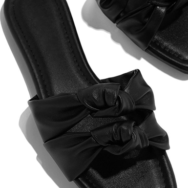 Women’s Faux Leather Double Knotted Ribbon Strap Sandals – Squared Toes