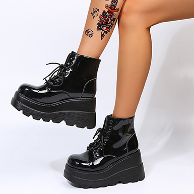 Women’s Heavily Textured Platform Boots – Front Laces / Extremely Rounded Toes